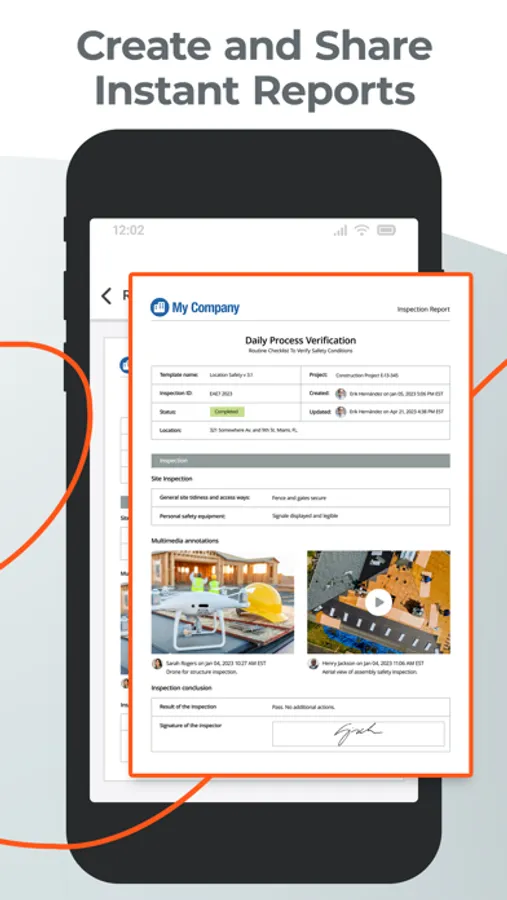 Visualogyx allows you to quickly generate a report following an inspection, with all filled-out form fields and images in a custom-branded PDF format, which can be shared with external parties.