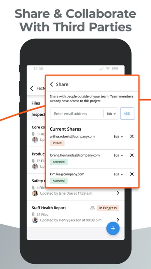 Visualogyx allows you to easily distribute PDF reports containing text and multimedia data externally and invite third-party users to view and collaborate on your projects.