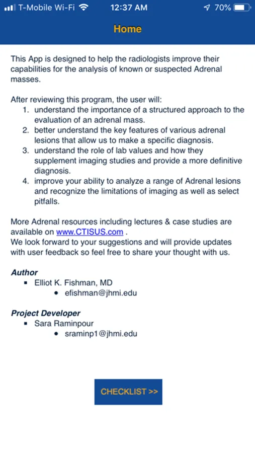 This App is designed to help the radiologists improve their capabilities for the analysis of known or suspected Adrenal masses.