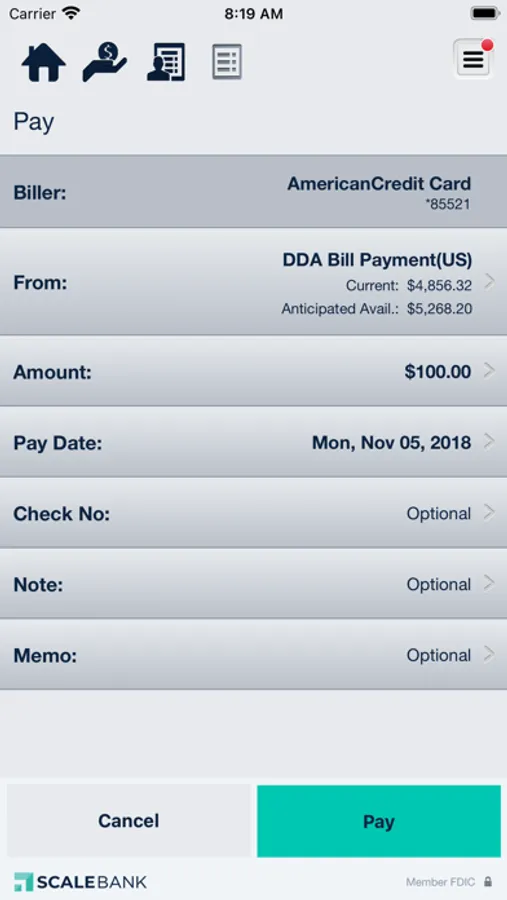 Bank conveniently and securely with Scale Bank’s Business Mobile Banking. Now you can manage your business finances anytime, anywhere - from your mobile device.