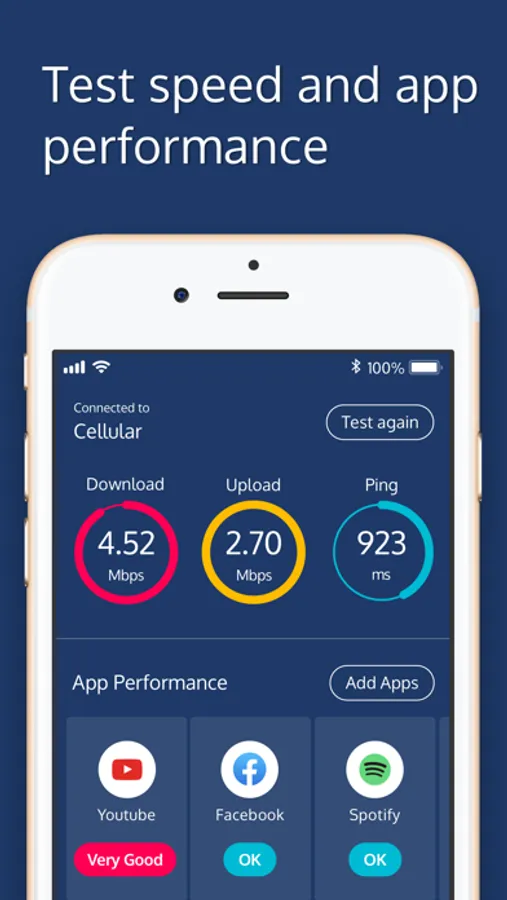 One simple test gives you easy-to-understand results for download speed, upload speed and ping time. Then, simply choose the apps you use most to see how they are impacted by your current network connection - no more trying to work out whether your network service provider is delivering the 5G connection you need.