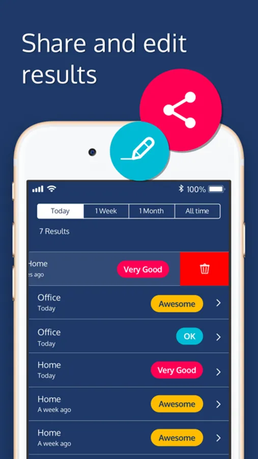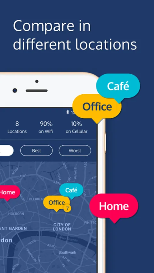 View all your internet speed tests by location on a map and sort them by best and worst performance. See a timeline of your tests in the history tab and review the stats for each speed test to monitor how your network experience has changed over time.