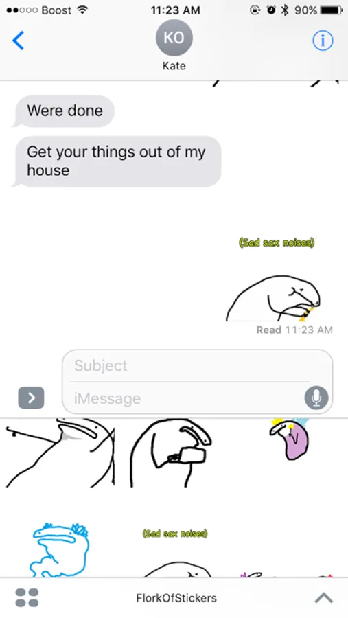 Sock puppet comics made in MS paint to show you that you can do anything if you have good ideas, then turned into stickers for your enjoyment.