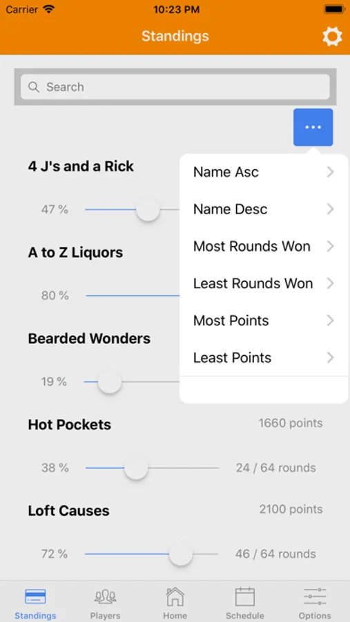Select your league and season within the settings and start following your league! If you log in, you will be able to submit your score sheet for your match.