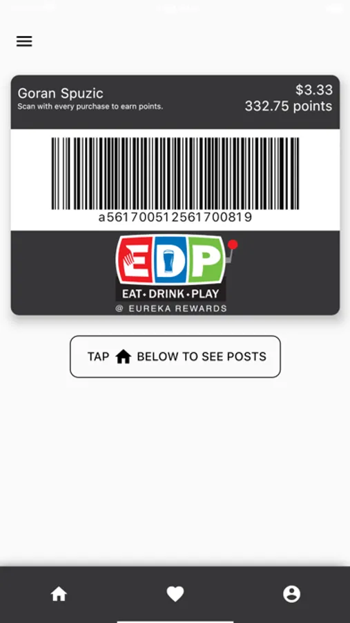 Welcome to the EDP Eureka Hotel Group Rewards App. Scan your unique QR code at the bar with each purchase to take advantage of our member specials and redemptions. Receive exclusive offers and rewards and be the first to know about upcoming events.