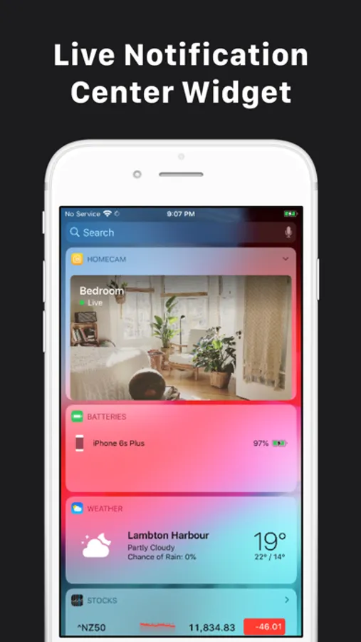 Quickly glance at selected camera feeds live in a Today widget, providing a great way to keep track of those views important to you.