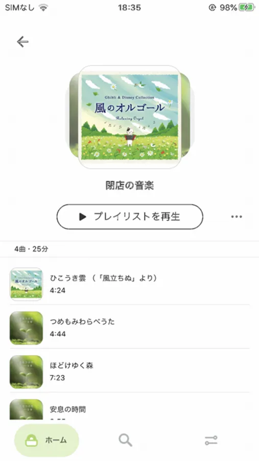 プレイリスト作成も可能なので、長めのプレイリストを組めば1日中流しっぱなしにすることも可能です。