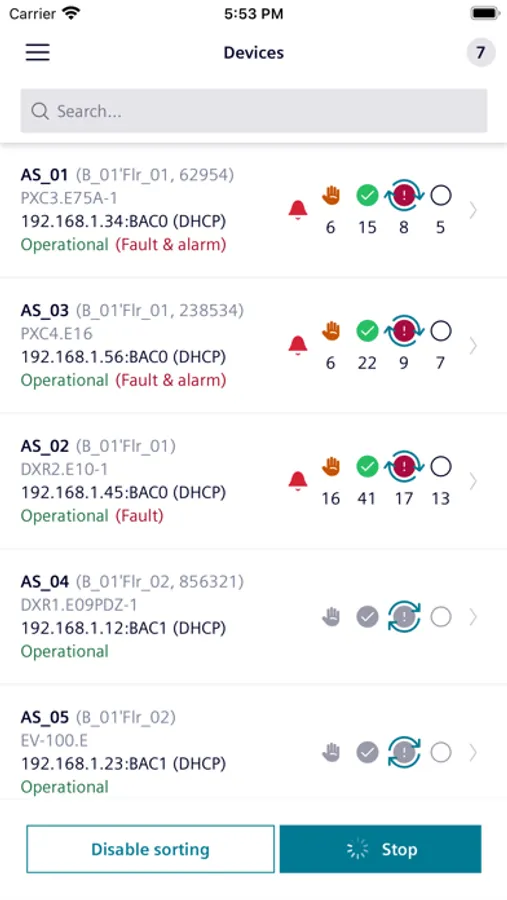 4) Fast overview of all devices in the network (name, type, IP address, location, equipment ID).