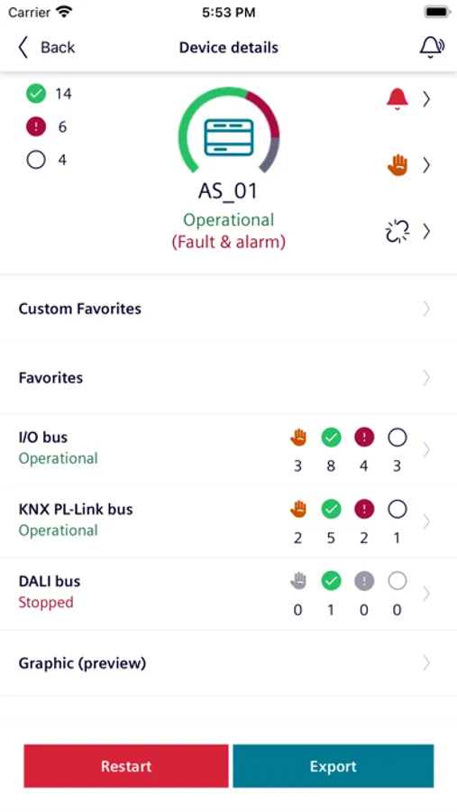 11) Indication of data points in alarm including reset/acknowledge for the DXR2… or PXC3.E.. or PXC4/5/7..