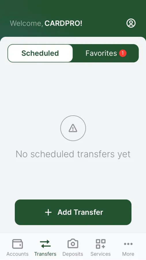 · Transfers: account to account, scheduled, pending ACH and check withdrawal transfers are available