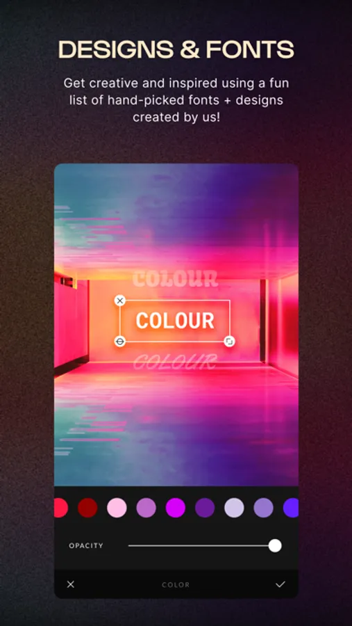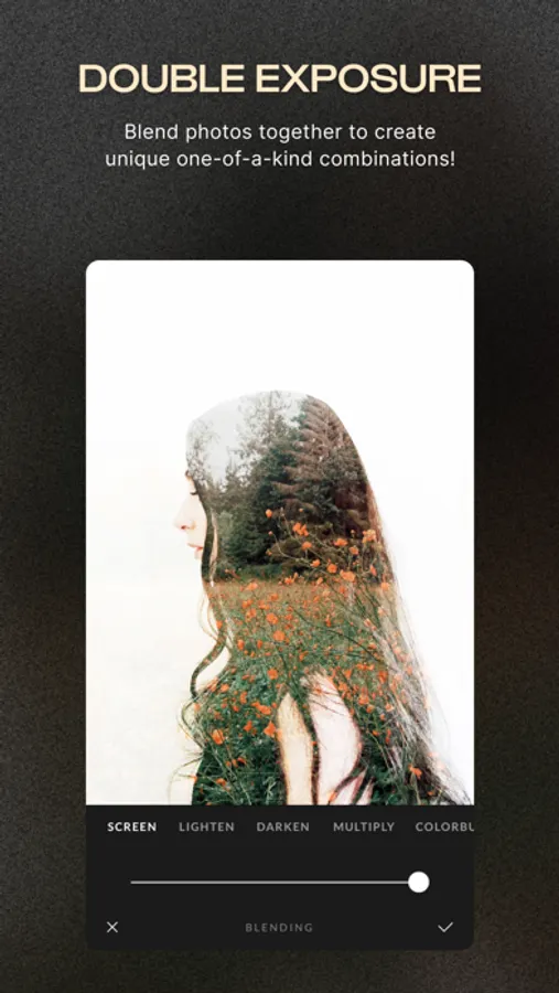 Our always-expanding filter library is created by passionate photographers and boasts over 300 unique filters. You’ll never need another app to find that perfect pairing for your photos. (+ a NEW filter added every Saturday until the end of time!)