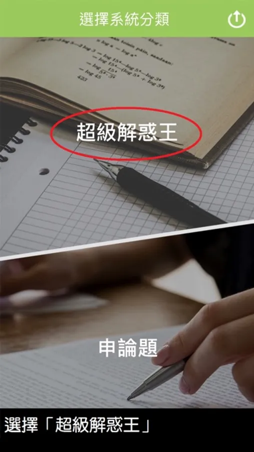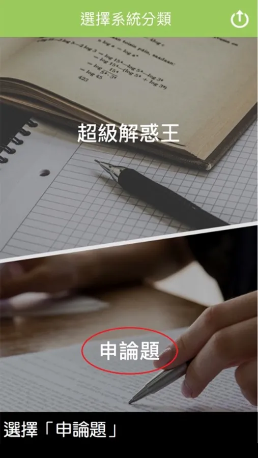 2.把申論卷答案拍成照片(一次拍一頁,請直拍),上傳到平台,「超級解惑王APP」會即刻向老師發出批改推播通知。