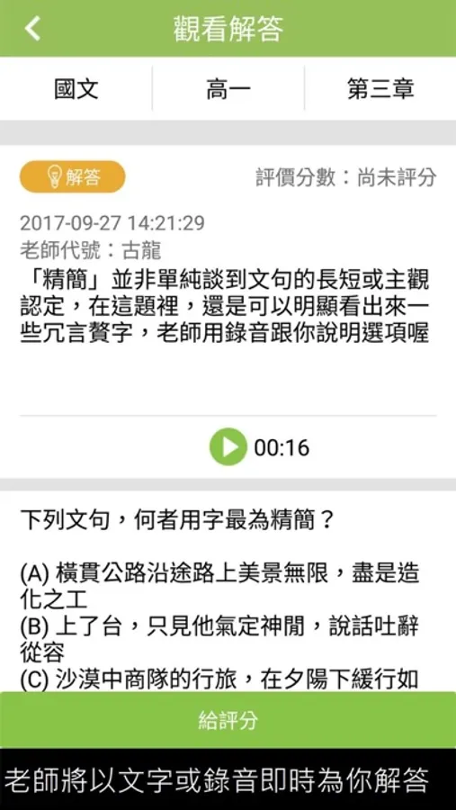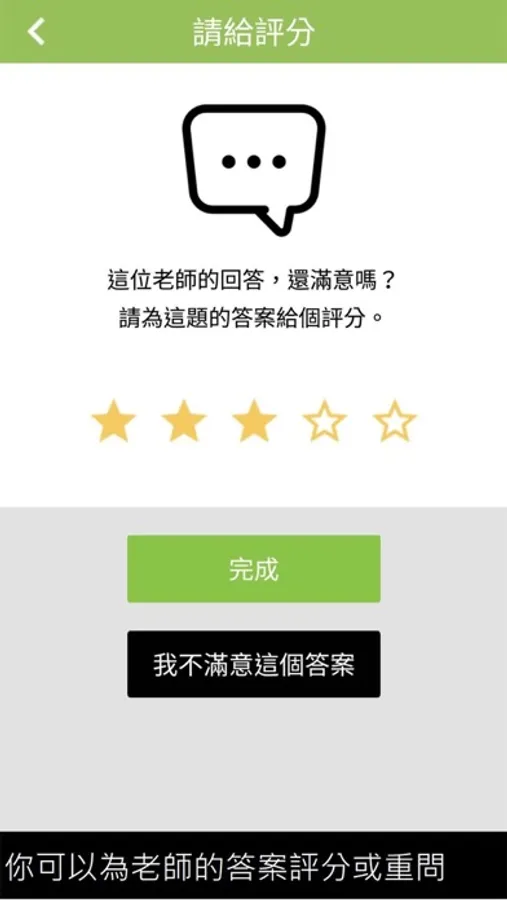 ●你可以針對老師的答覆進行評分,讓我們知道老師評價,為您把關解題品質。