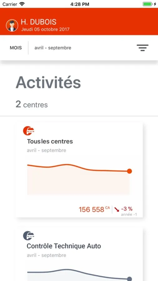 CTonline est une application de supervision de centres de contrôles technique automobiles et poids lourds destinée aux exploitants et contrôleurs de centres. Elle permet d'obtenir en temps réel sous formes de courbes tous les chiffres de production par centre et consolidé multi centres avec des représentations, mensuelles, hebdomadaires et journalières. Chaque période peut être détaillée en volume, CA, VTP avec comparatif de l'exercice précédent.