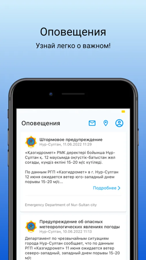 Our notifications, unlike traditional SMS, come almost instantly. With us, you will learn about the cancellation of classes in schools, changes in the epidemiological situation, closures of highways and other natural disasters in your region in time.