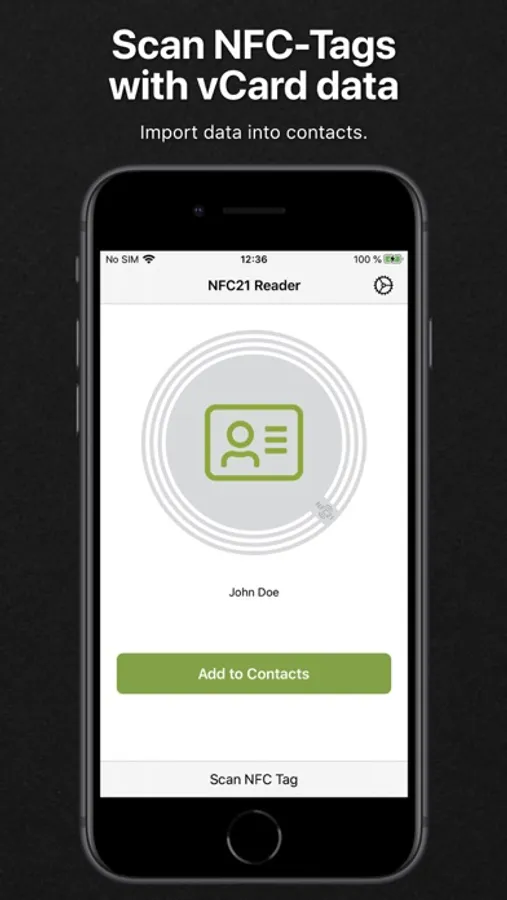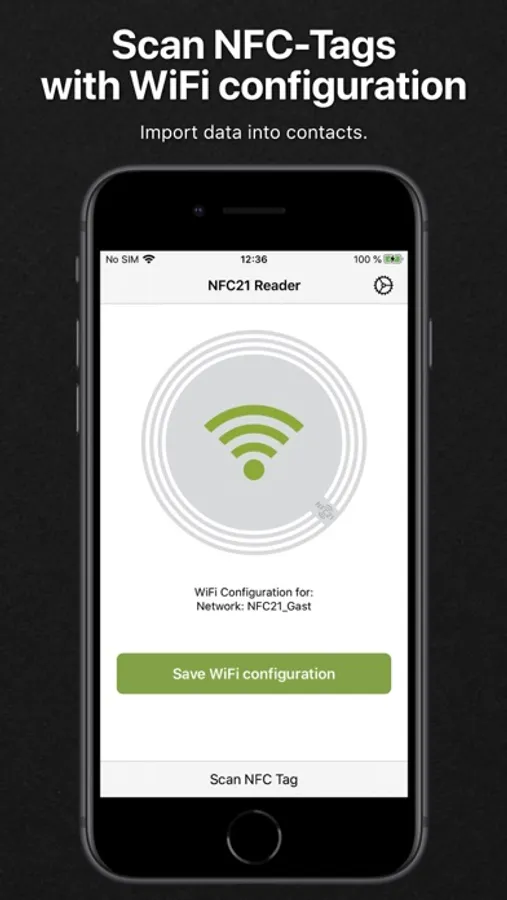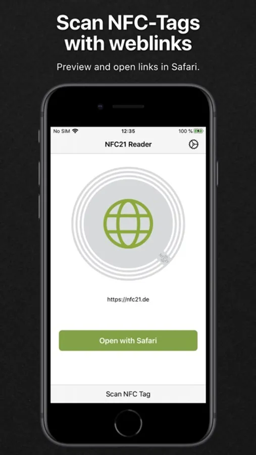 NFC tags are used to store information like website links, phone numbers, business cards or WiFi configurations. NFC21 Reader enables you to read and interact with such nfc tags in just two easy steps: First, by scanning the NFC tag, you get a preview of its contents. Second, execute an action matched to the given content. For example, to open a weblink in Safari, import a business card into contacts or show a location in maps.
