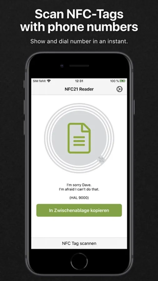 We love NFC! That's why, we strive to provide the most simple and usable solution to read NFC-Tags. NFC21 Reader focuses on the content of a scanned NFC-Tag and offers an action to proceed immediately – without any distractions whatsoever.