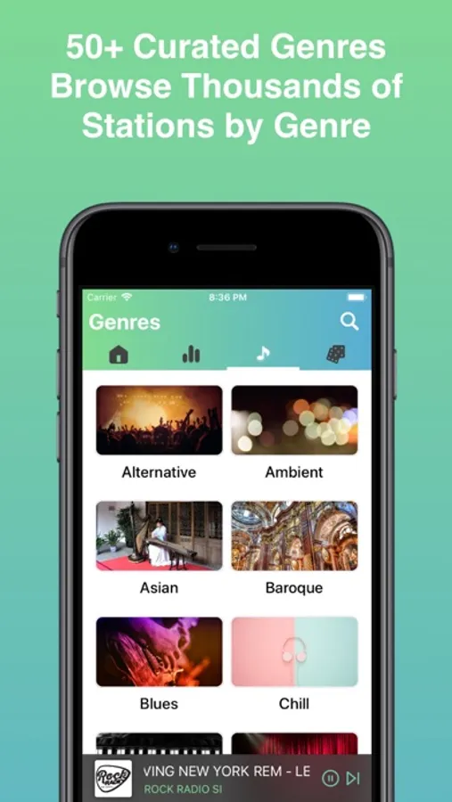 Discover new stations by genre. Choose your favorite genre and get thousands of stations in your feed.