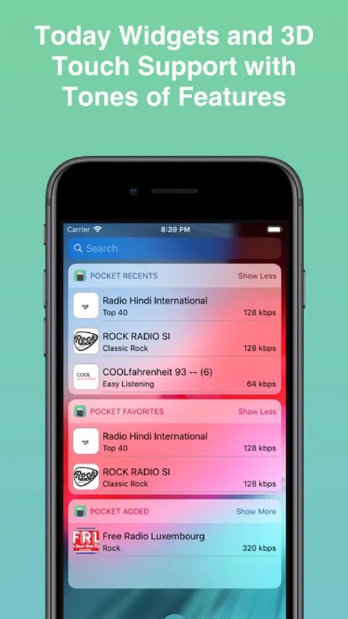 Please note that there might be some stations that do not work because their stream is offline or are just available for a specific region. Pocket Radio is optimized for 3G networks and Wi-Fi.