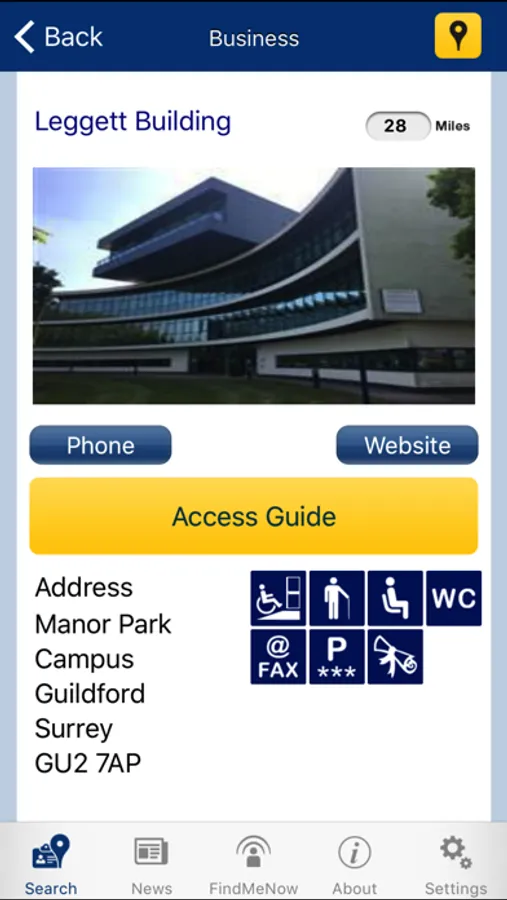 AccessAble – Uni of Surrey gives you information on buildings like; halls of residence, cafes, bars, lecture halls, toilets and pretty much everything on campus!