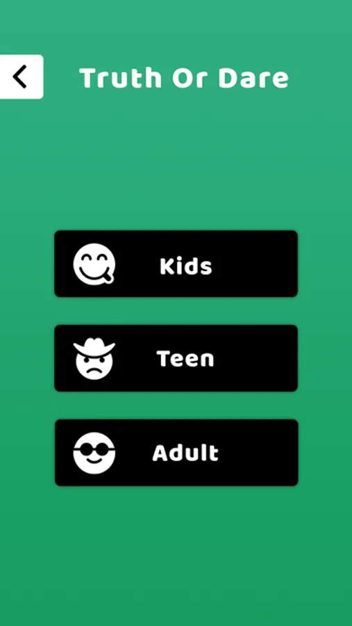 10. 3 different game modes - truth and dare app for kids, truth and dare app for teenagers, truth and dare app for adults