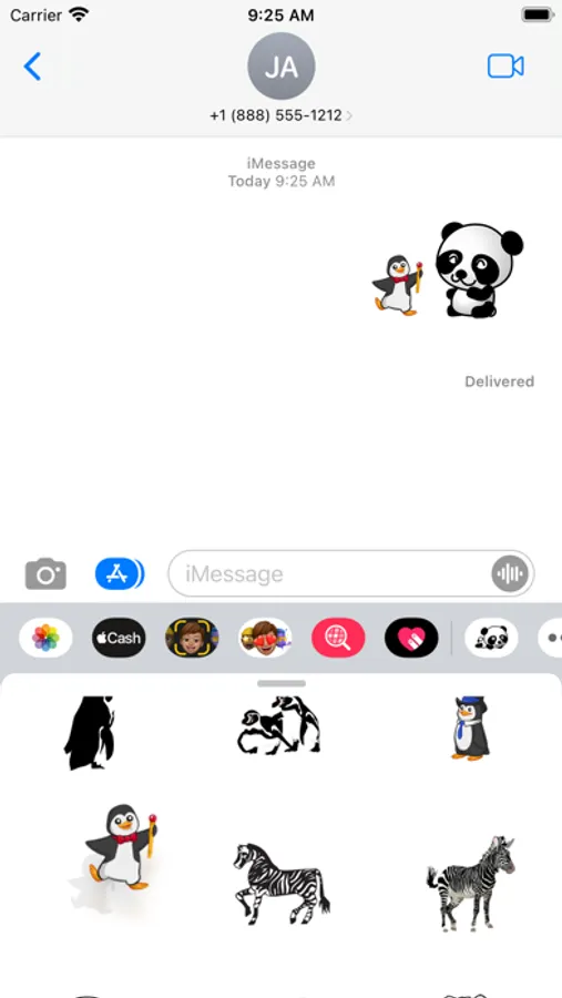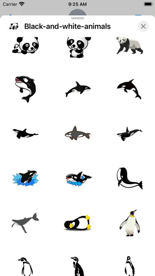 It is a sticker of cute, black-and-white animals that are attached to funny messages