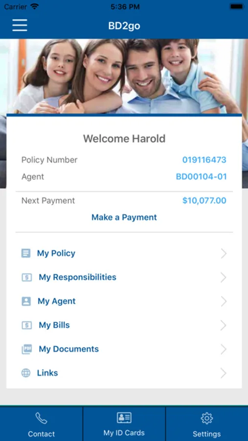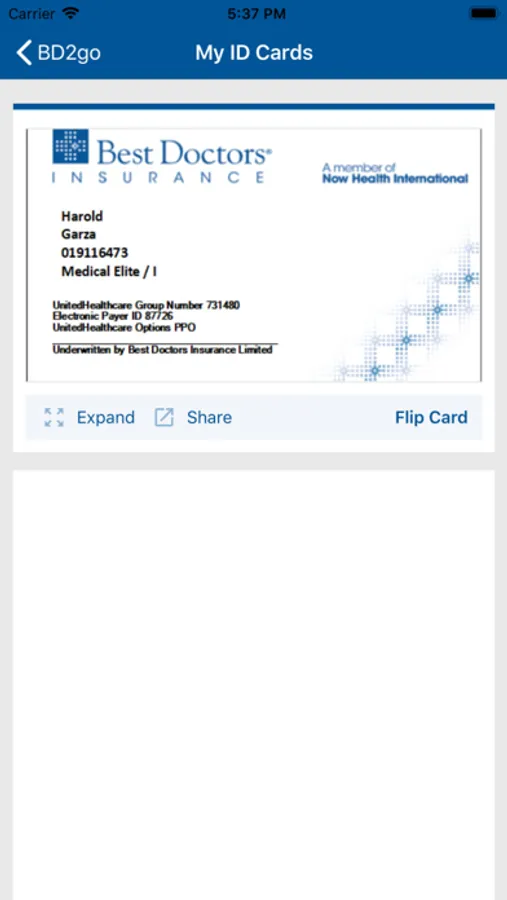 The BD2go app provides Best Doctors Insurance policyholders with quick, easy, and secure access to important account information, including billing details, ID cards, and agent contacts.