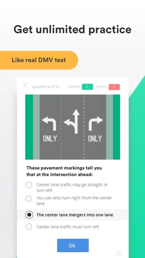 Driver Start app provides two helpful methods for checking traffic rules knowledge and practicing car, motorcycle, and CDL permit test questions.