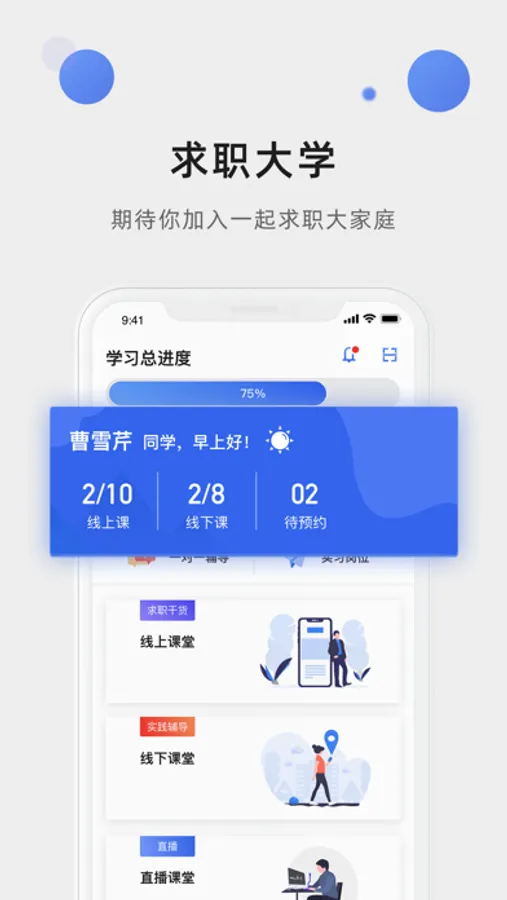 一起求职APP,为一起求职旗下专为大学生设计制作的职前教育平台,作为陪伴在同学们身边的求职小助手,让大学生求职更容易!