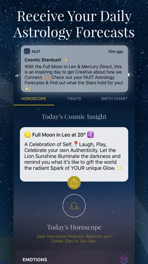 NUiT will then generate your Astrology Chart and translate your Birth Details into your Cosmic Personality Traits.