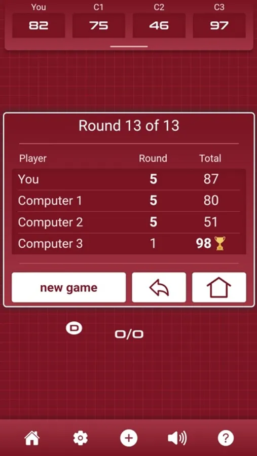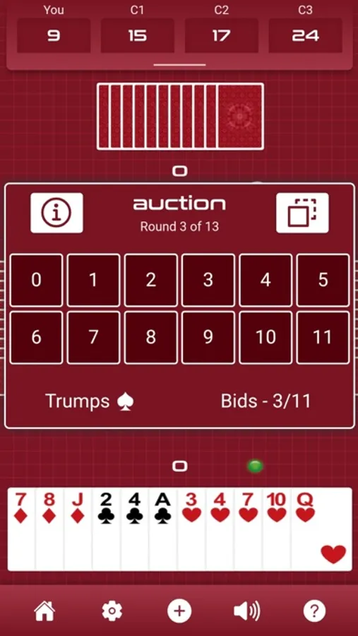 Each trick scores one point, and correctly predicting how many tricks you will win at the bidding stage scores 10 points per round, or 5 if you bid 0 and the ‘Nil Bid Worth 5’ setting is switched on.