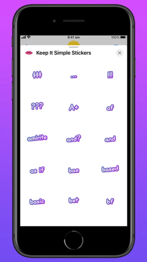 Reply and react to your friends' messages with the Keep It Simple Sticker-pack featuring over 200 of your favorite phrases!