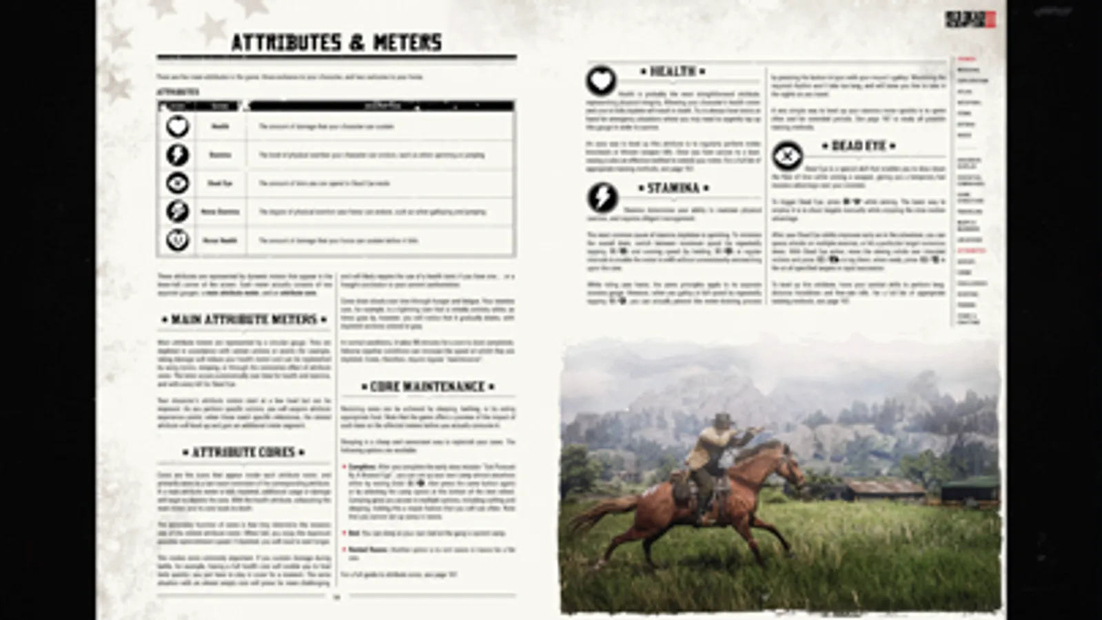 The official manual for Red Dead Redemption 2 detailing general game controls and everything from player attributes to combat, fishing, hunting, horse bonding, activities and more.