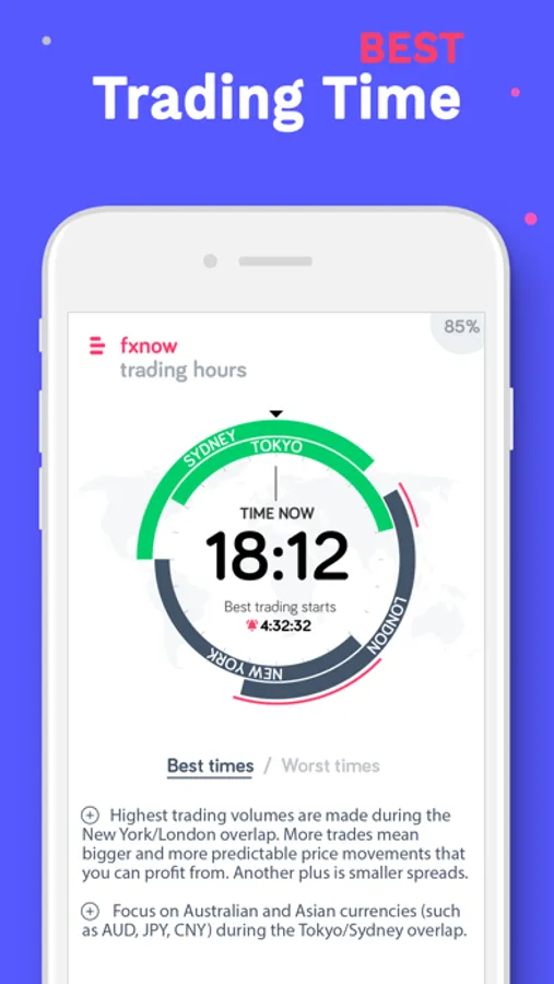 Want real-time Forex signals and CFD expert tips at your fingertips? You’ve got it. With notifications of important currency analyses delivered straight to your smartphone, all you need do is check out the indicators and start investing! Whether you’re a beginner or an expert, let FXNOW make monitoring best Forex hours and responding to handy signals easy and profitable.