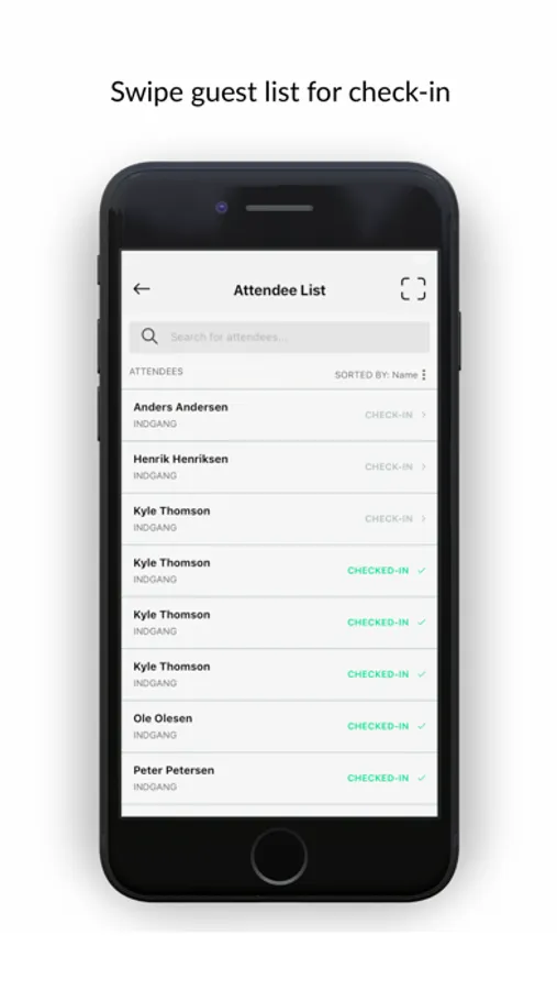 Event organisers can check in guests many devices using the 4 digit pin found on their "Event Dashboard". Guests can then be checked in by QR scan or swipe simultaneously with live status updates of checked in guests.