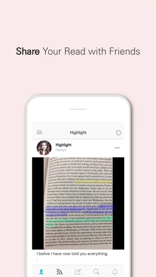 Highlight is a book club based on you highlight on books. Just take a photo or capture a screenshot of books or ebooks or even PDF and highlight, then share it with your friends and collleagues while never losing important readings. You can add sources and tags to organize your readings in your own way.
