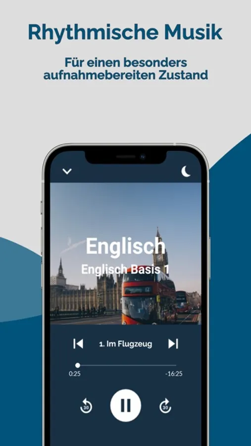 Die Hintergrundmusik, die Du bei jeder Audio-Lektion auswählen kannst, sorgt für einen besonders aufnahmefähigen Zustand - so lernst Du noch schneller und effektiver eine neue Sprache.