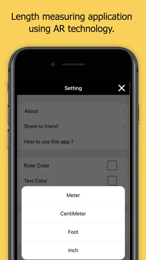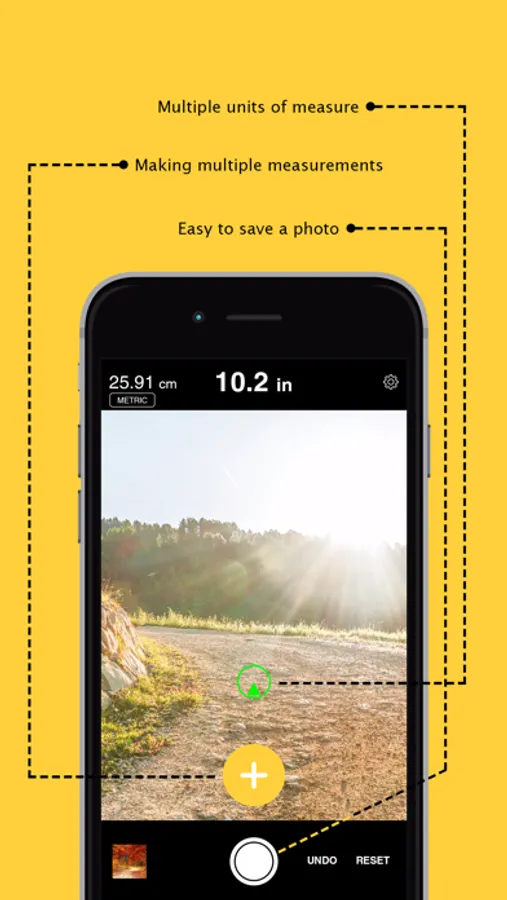 Measures distances between two points in a three dimensions ( 3D ) environment using the latest technology of Augmented Reality ( AR ). This means, you can use it for measurement of length, height, depth or width.