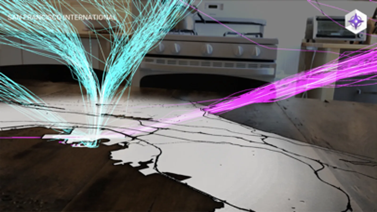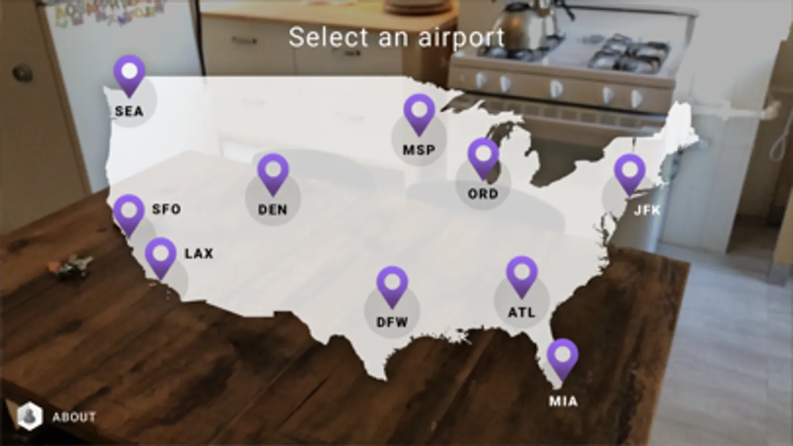 Flight Paths uses Augmented Reality to visualize the airspace above America's busiest airports. Select an airport from the map, point your camera at a table or floor, and tap the screen to get started. A beautiful animation of flights taking off and landing will fill the sky above the airport. Flight Paths lets you see these 3D routes in a whole new way, right from your living room.