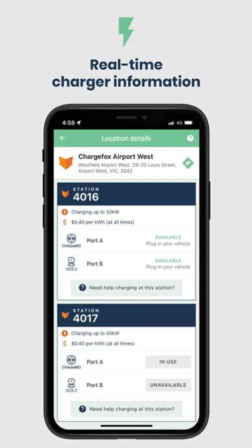 - Information: Get real-time information about charger functionality, pricing and availability