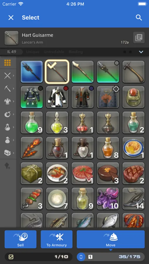 *Please note that item management via the FINAL FANTASY XIV Companion app is not available while logged into the game with the associated service account.