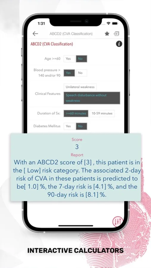 * Almost 20 risk calculators and assessment tools, for various conditions including MI, angina, PE, a-fib, CHF and for procedures such as PCI and CABG – and many others
