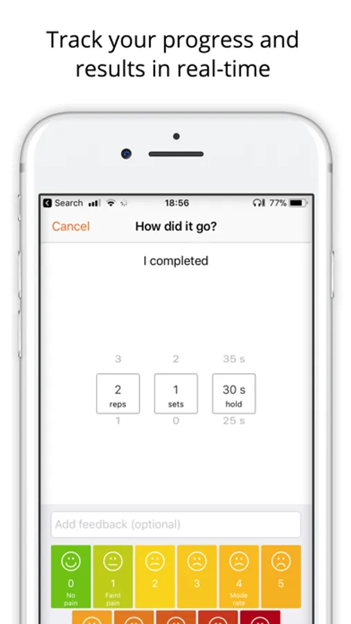 Important: this app is not intended to diagnose any condition. Your exercise program on this app will have been assigned to you after consulting with a healthcare professional. Please seek a healthcare practitioner’s advice in addition to using this app and before making any medical decisions.