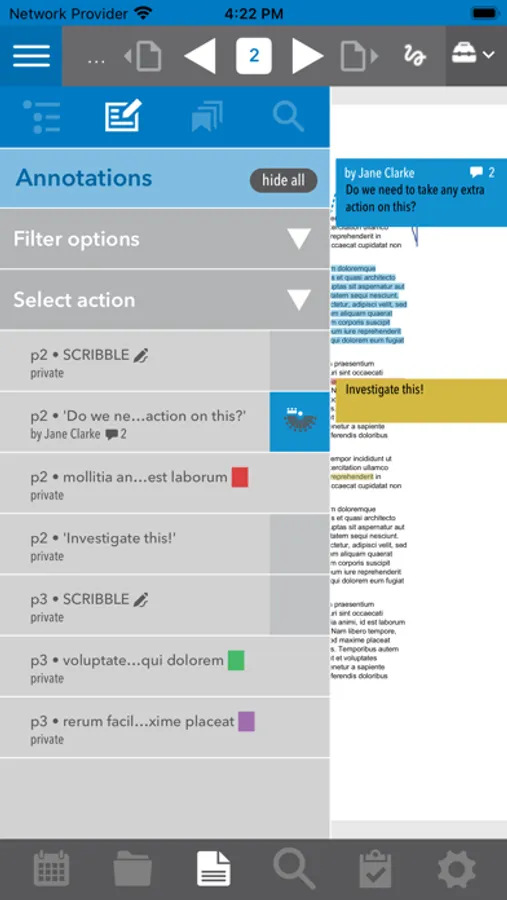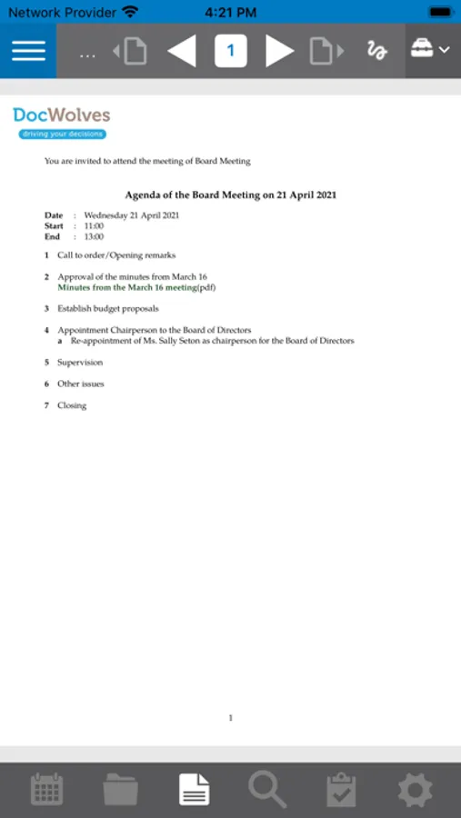 Preparing a meeting is so easy. For each meeting you receive just one PDF document, which includes the agenda, the attachments, minutes and documents received. Our unique PDF reader allows you to annotate the agenda, minutes or received document wherever you want. Those endless stacks of separate documents are a thing of the past: now you have everything neatly in one place. Annotating is simple, and you can share your notes with your colleagues during, but also before the meeting. Your notes are saved, and placed back into the document after an update of the agenda or attachments. The archive is immediately available and fully searchable.