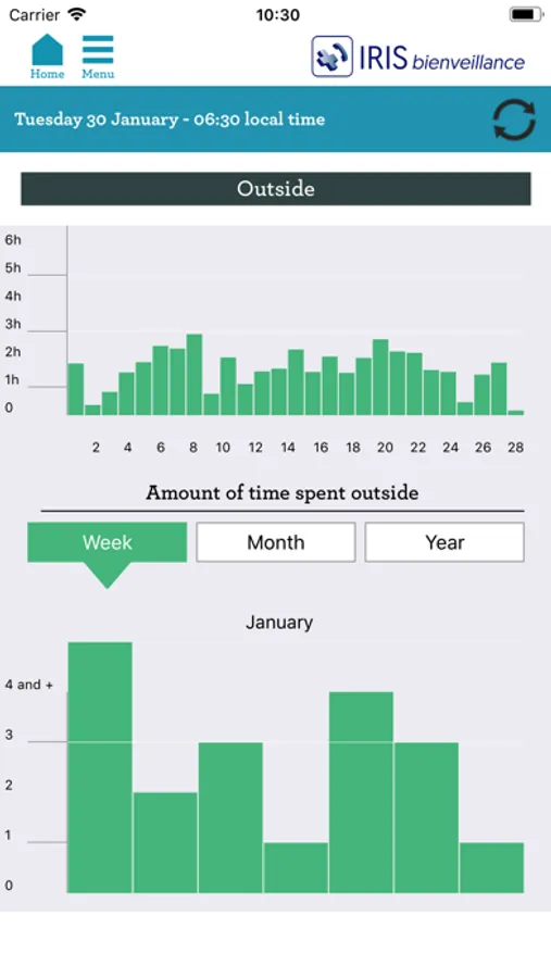 - Analyse daily activity, outside activity and activity per room as a snap shot, or monitoring progress over a longer period of time.