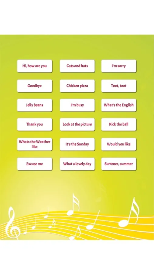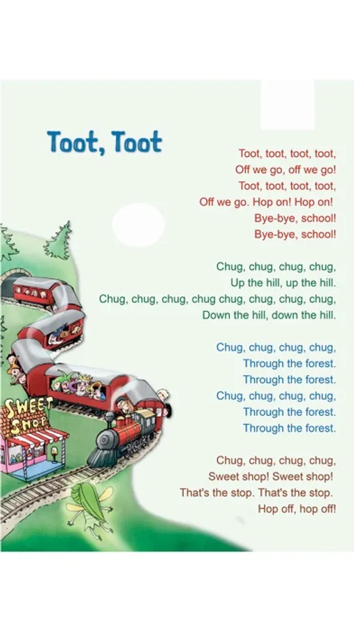 Everyday phrases in rhythm and rhyme for young learners of English. Vocabulary and grammar patterns in delightful chants with a background of music keep learning fun. Enjoy.
