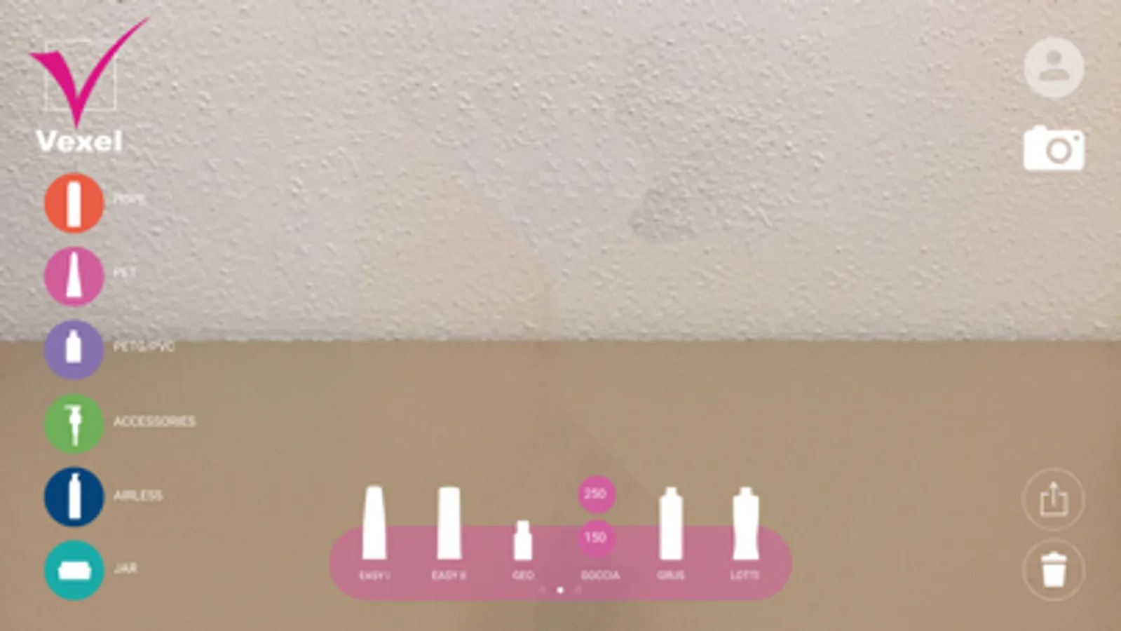 Vexel Pack Configurator è un configuratore di packaging in realtà aumentata (AR), che permette di combinare il pack scegliendo tra vasi, flaconi, airless e accessori disponibili nell’intero catalogo prodotti Vexel. Grazie alla realtà aumentata puoi vedere in tempo reale l’aspetto del prodotto configurato e personalizzarne colori e materiali. Puoi creare tutte le combinazioni che desideri e salvare una fotografia sul tuo dispositivo.  Se sei un utente registrato, hai inoltre la possibilità di salvare le configurazioni dei prodotti creati nel tuo account, per poterle richiamare in un secondo momento, e di inviare direttamente a Vexel una mail di richiesta preventivo.
