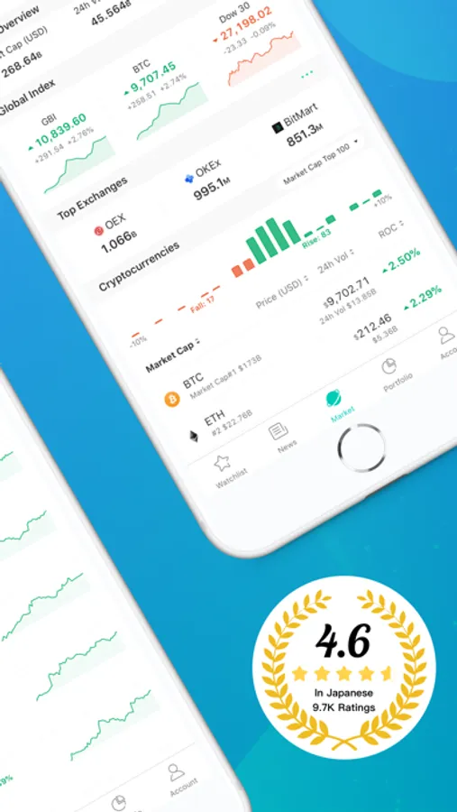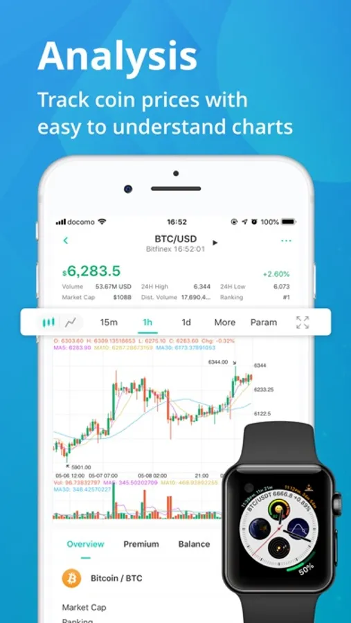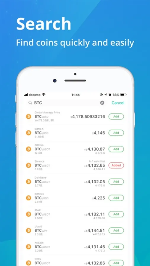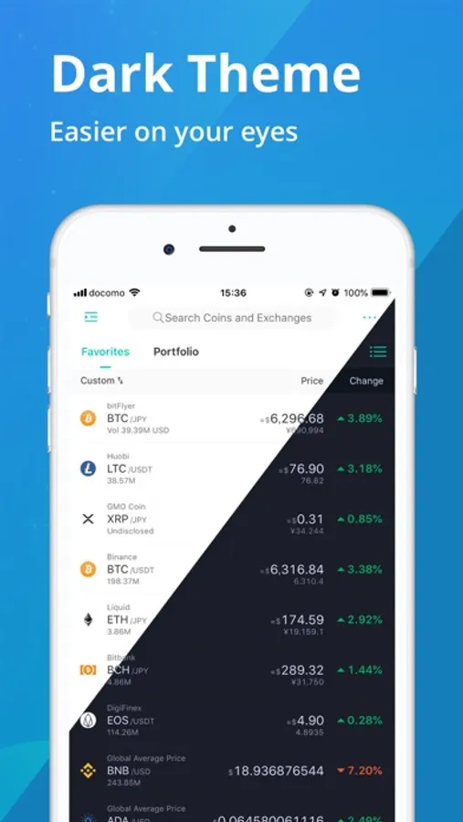 Birds-eye market analysis with 7,700+ trading pairs. Display the real-time price of each crypto exchange side by side. See price differences at a glance with daily/weekly/monthly/historical prices, candlestick charts, and widgets. Display fiat currency and convert as you need.