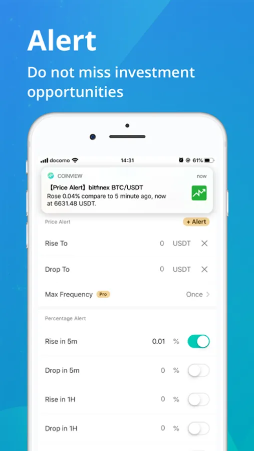 Set up personal notifications for each coin to know when your portfolio changes. Set different sounds for different alerts.