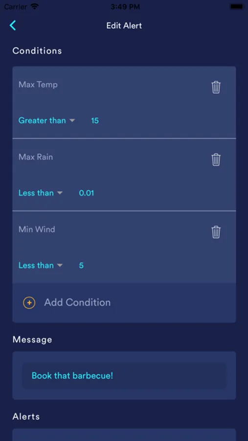 OnOrNot helps you create weather alerts for events and allows you to share them with friends and family